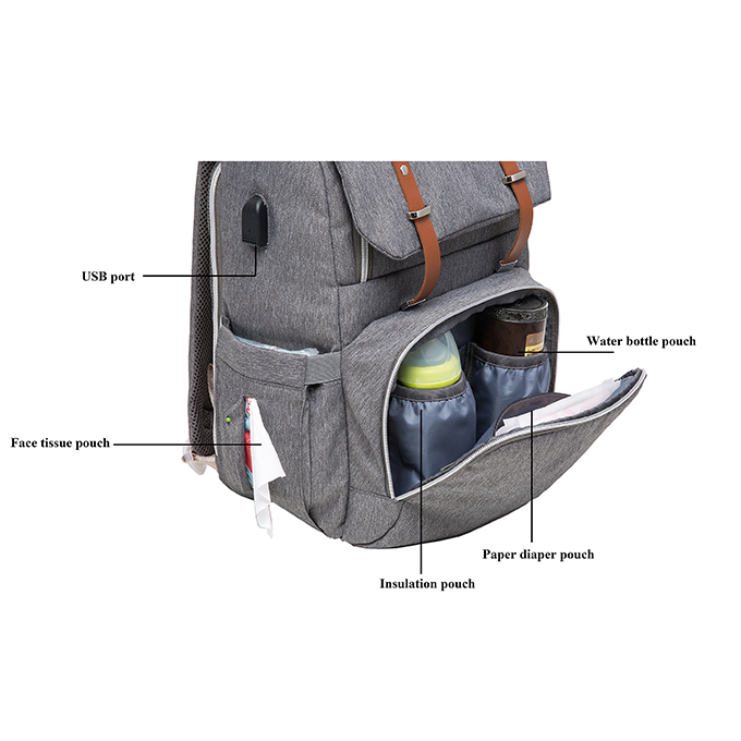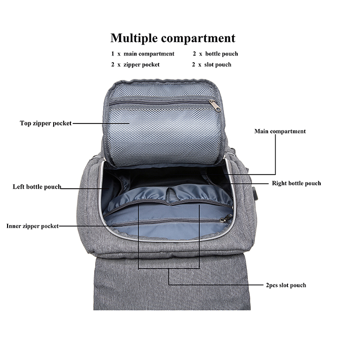 * Inner :with big compartments,can hold children's clothes,Paper diaper,water bottle,data cables,earphone,power bank&wallet etc.